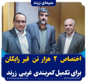 سیمای زرند- با پیگیریهای دکتر عبدالحسین همتی نماینده مردم زرند و کوهبنان در مجلس شورای اسلامی، و مهندس علی ضیاالدینی شهردار شهر زرند، ۲ هزار تن قیر رایگان به ارزش ۶۰ میلیارد تومان به پروژه کمربندی غربی زرند اختصاص یافت.