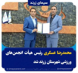 سیمای زرند- مهندس محمدرضا عسکری از داوران خوشنام، تحصیلکرده و باتجربه فوتبال، با حکم احد سلطانی رئیس هیأت انجمنهای ورزشی استان کرمان، به عنوان رئیس هیأت انجمنهای ورزشی شهرستان زرند منصوب شد.