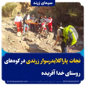 سیمای زرند– روز گذشته (یکشنبه ۶ مهرماه) یک جوان زرندی که برای پرواز با پاراگلایدر به کوههای روستای خدا آفرین رفته بود، دچار حادثه شد.