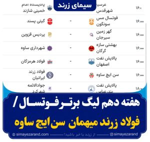 هفته دهم لیگ برتر فوتسال/فولاد زرند میهمان سن‌ایچ ساوه